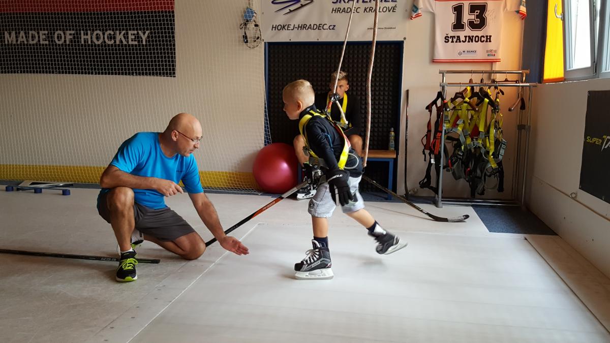 V rámci tréninků vyzkoušíte také míchání puku v jízdě s "hlavou nahoře", střelbu na branku, práci ve dvojici na ledě a další dovednosti.